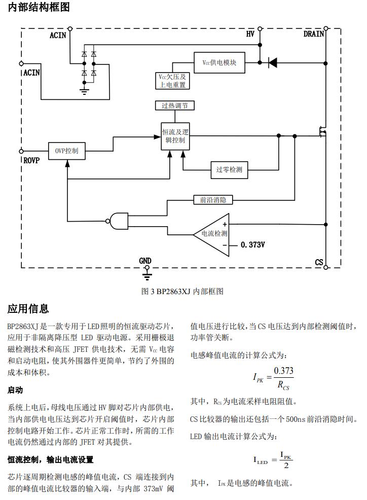 BP2863XJ適用于85伏~265伏全范圍輸入電壓的非隔離降壓型領先恒流電源,芯片ROVP引腳帶使能夠功能,適用于開關調色和感應燈應用