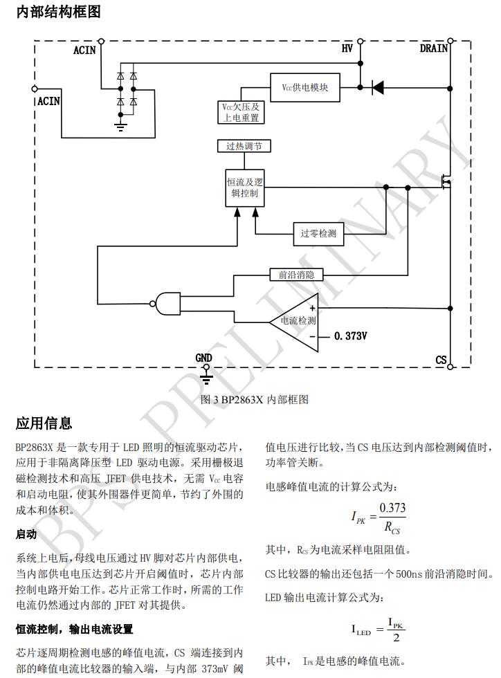 BP2863X is a step-down LED constant current driver chip. Chip worker In the critical continuous mode of inductor current, suitable for Non isolated step-down type with full range input voltage of 85Vac~265Vac LED constant current power supply. The BP2863X chip integrates a five hundredV power switch internally and uses a gate Demagnetization detection technology and high-voltage JFET power supply technology, no need for VCC electricity The capacitance and starting resistor make its peripheral devices simpler and save peripheral resources The cost and volume.