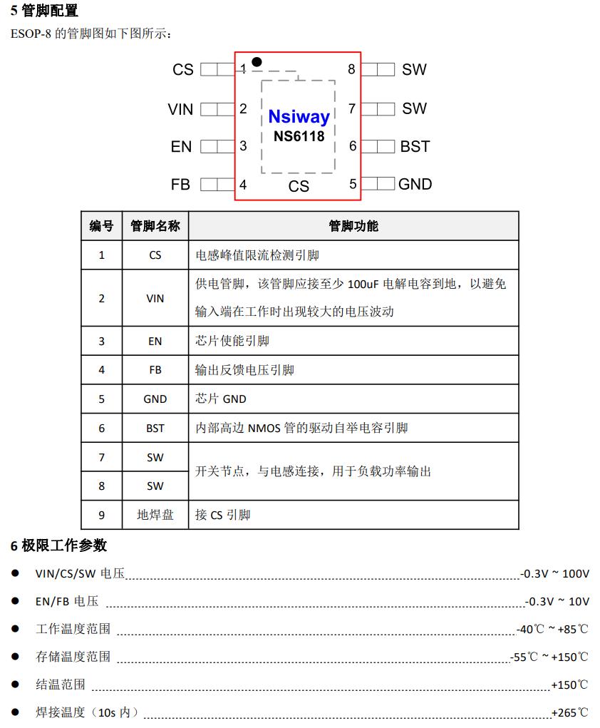 NS6118 采用 ESOP8 的標準封裝。