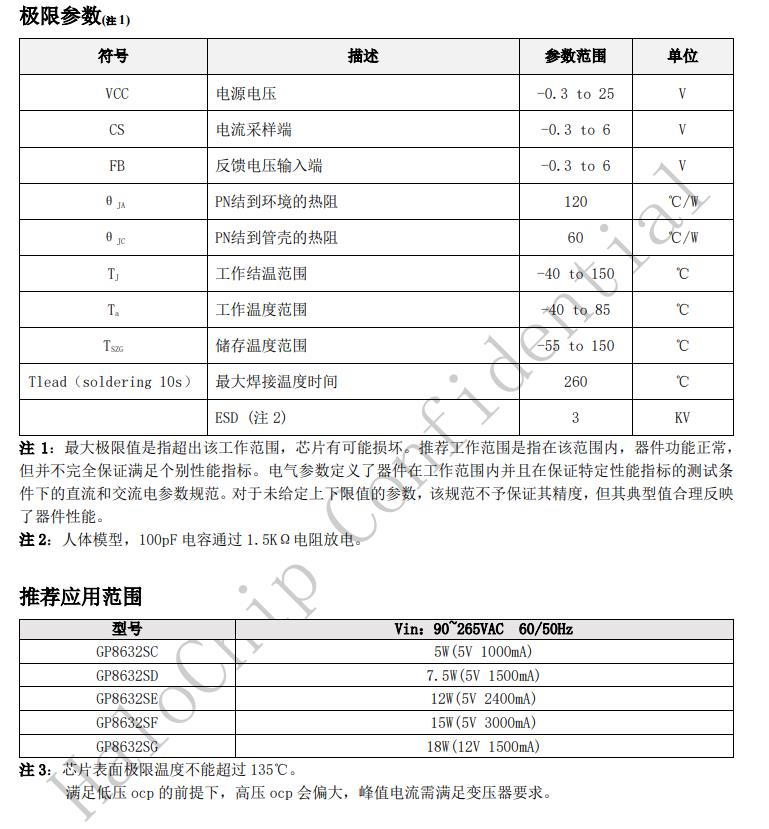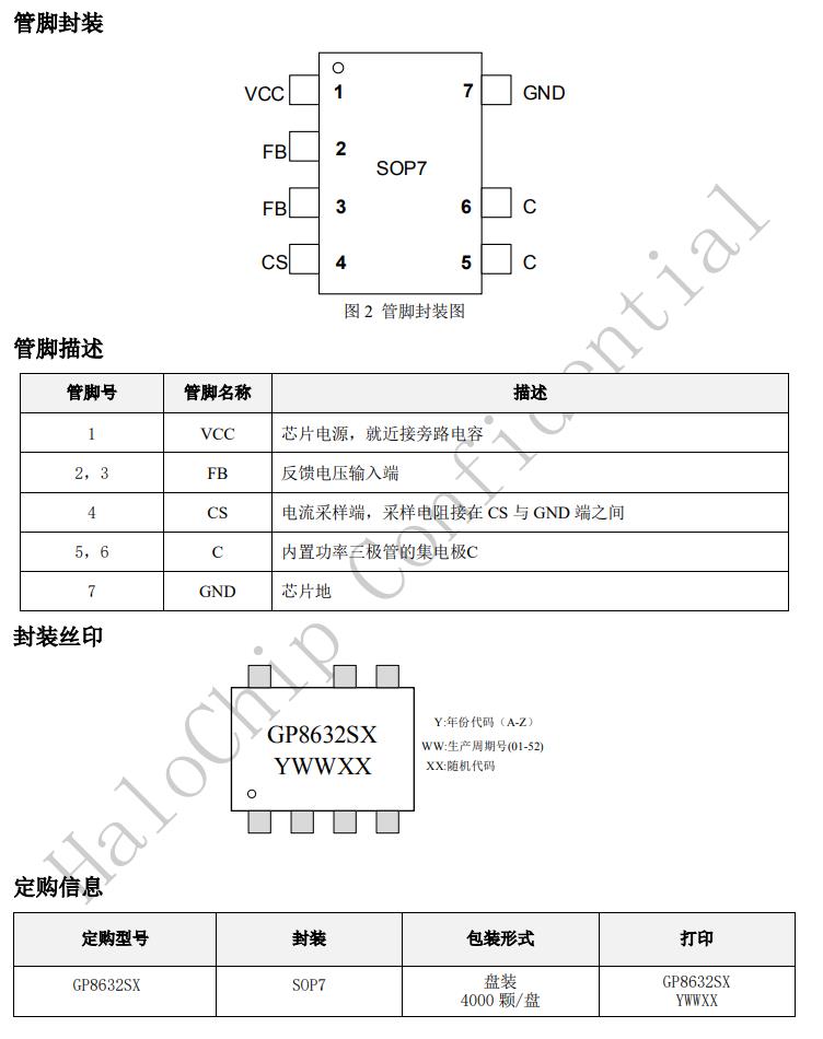 GP8632SX是一款恒壓、恒流的原邊反饋谷底導(dǎo)通控制芯片,適用于充電器和適配器。GP8632SX采用特有的輸出線損補(bǔ)償技術(shù),可以有效的補(bǔ)償輸出電流在輸出線上的損耗壓降。GP8632SX內(nèi)置環(huán)路補(bǔ)償電路,無需外圍補(bǔ)償電路,系統(tǒng)具有良好的穩(wěn)定性。GP8632SX可以實(shí)現(xiàn)良好的恒壓、恒流特性,滿足待機(jī)功耗小于75mW。GP8632SX具有多重保護(hù)功能,包括開路保護(hù),過壓保護(hù),短路保護(hù)等功能。GP8632SX采用SOP7封裝
