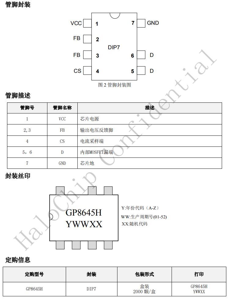 GP8645H采用DIP7封裝。